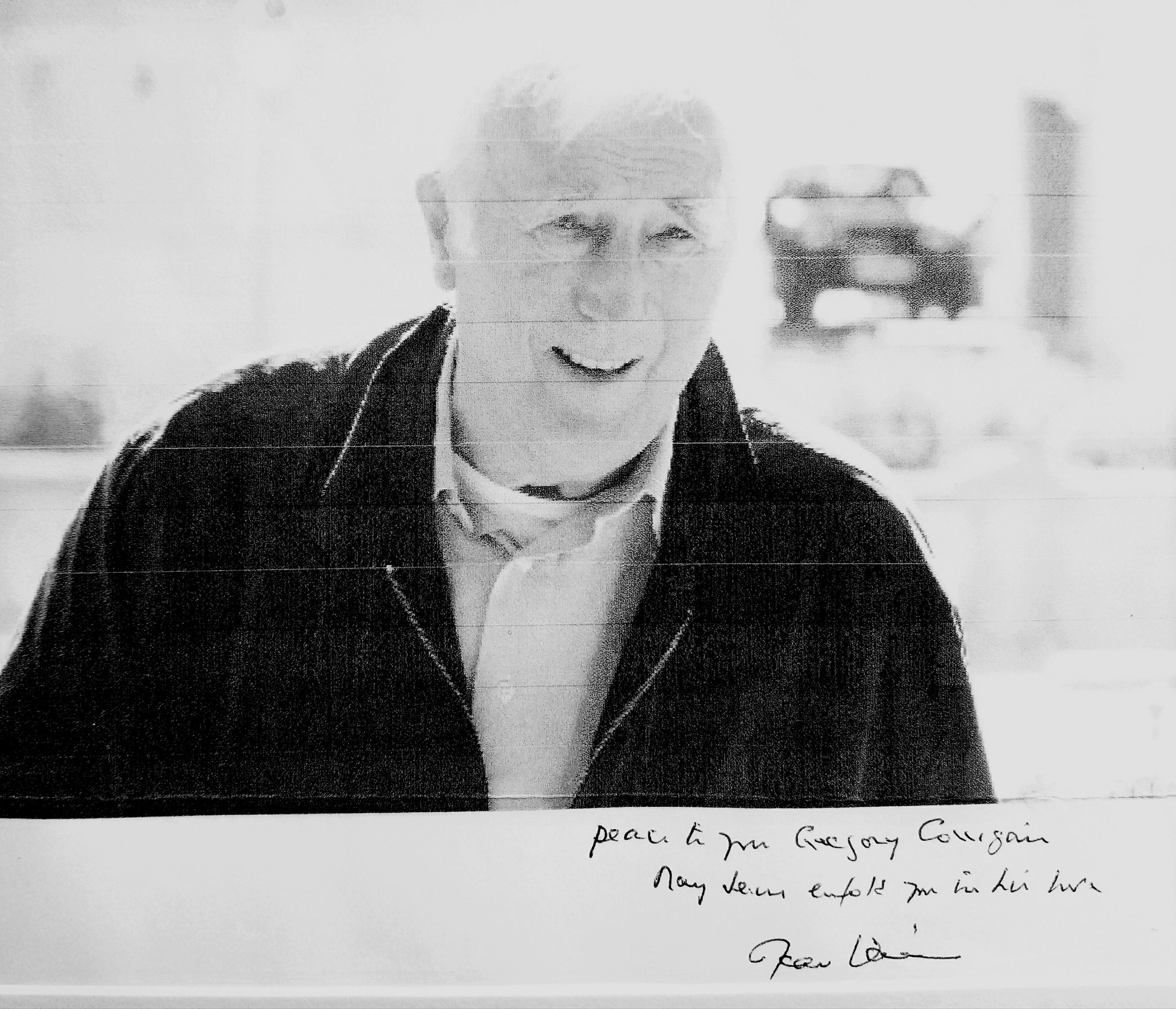 On an autographed picture Jean Vanier sent me years ago, he wrote: “Peace to you, Gregory Corrigan. May Jesus enfold you in his heart. Jean Vanier”